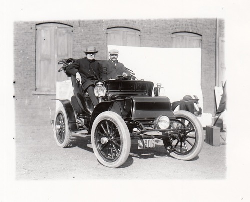 Thomas Edison and Fred Ott in electric automobile.