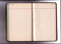 Some of the markings made in pencil in these cash books were made by ENHS Curator Leah Burt during the 1970s and/or early 1980s. For Leah Burt handwriting examples see pages for: December 19, 1921 (cash book 17) ; February 12, 1923 (cash book 17) ; October 27, 1924 (cash book 18) ; December 01, 1925 (cash book 19).