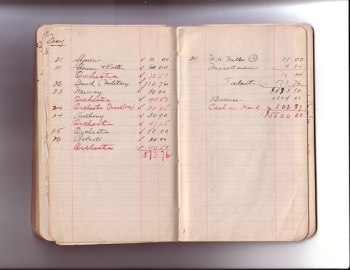 Thomas Edison's New York City Recording Studio Cash Book 02 (of 21), Image 86 (of 94), (Notebook #: PN-04-12-12, NPS catalog #: EDIS 1413). This book documents expenditures for recording artist fees and other payments authorized by studio manager Walter H. Miller from December 12, 1904 - June 30, 1906. Digitally scanned December 2004 through July 2005 at resolution 300 dpi, 24 bit.