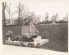 Sign and model of incandescent lamp behind Menlo Park memorial for Light's Golden Jubilee.
