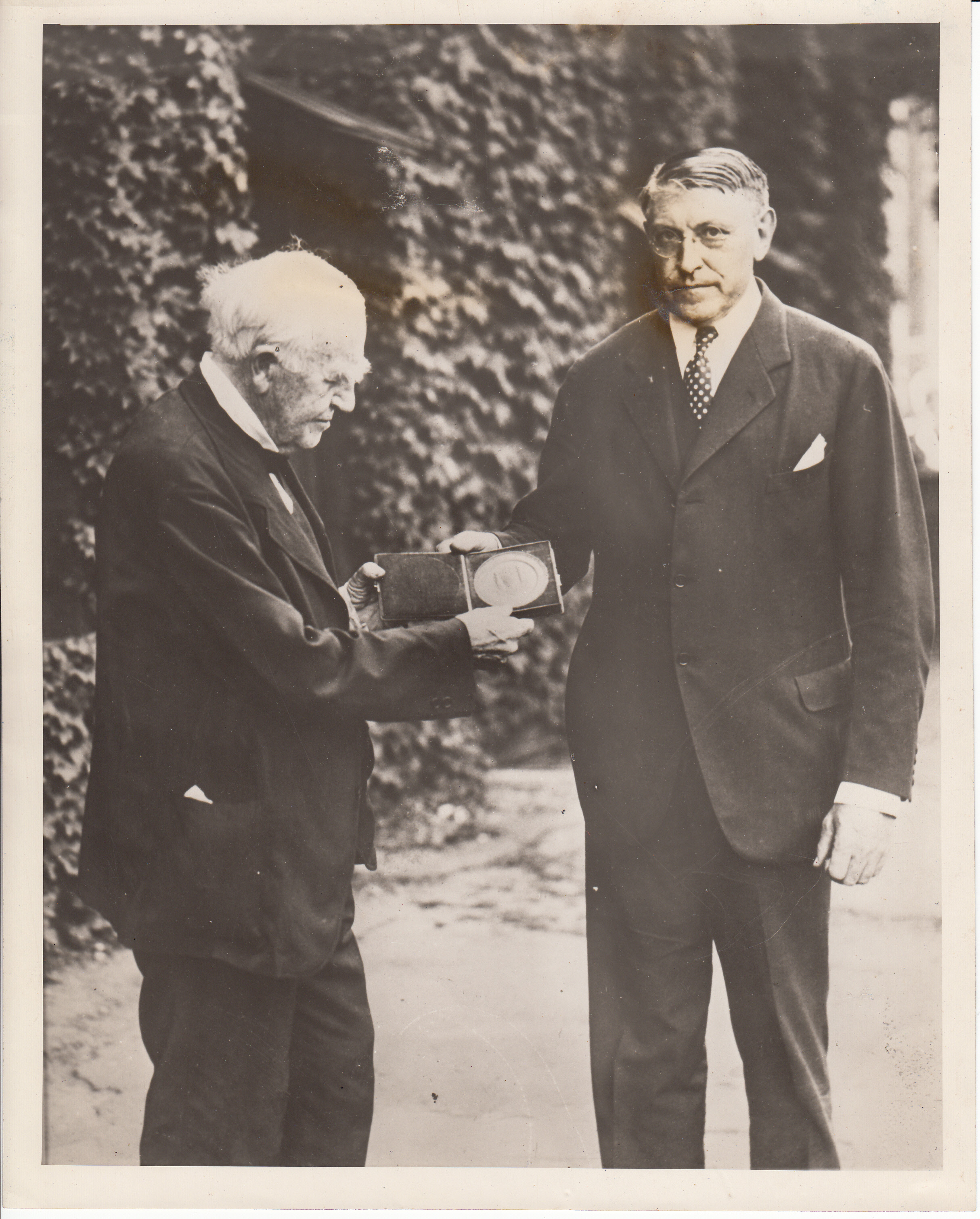 Owen D. Roberts, Associate Justice of the U.S. Supreme Court, presenting Thomas Edison with the John Scott Medal for Scientific Achievement.