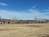 A grassy field with a building in the background.