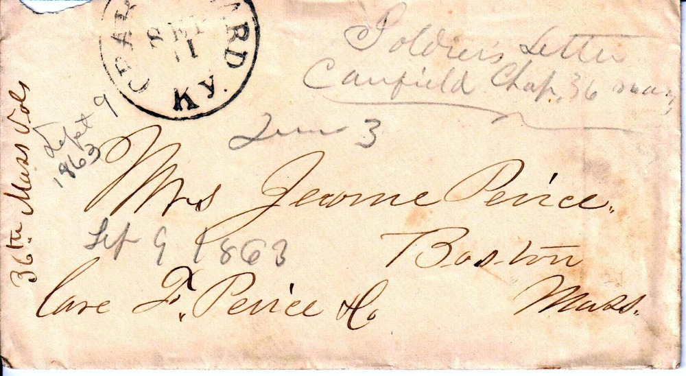 Primarily letters written during the American Civil War by Jerome Peirce, 36th Regiment of Massachusetts Volunteers, to his wife from late 1862 until May 1864, when he was killed in action. Also includes a few letters from Peirce's wife and other correspondence to and from other Peirce family members and friends.