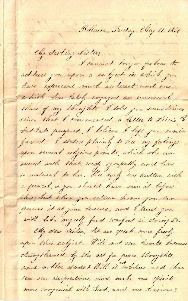 Abby [Abbie] to Allie (Miss Albinia Jaquith), May 18, 1855