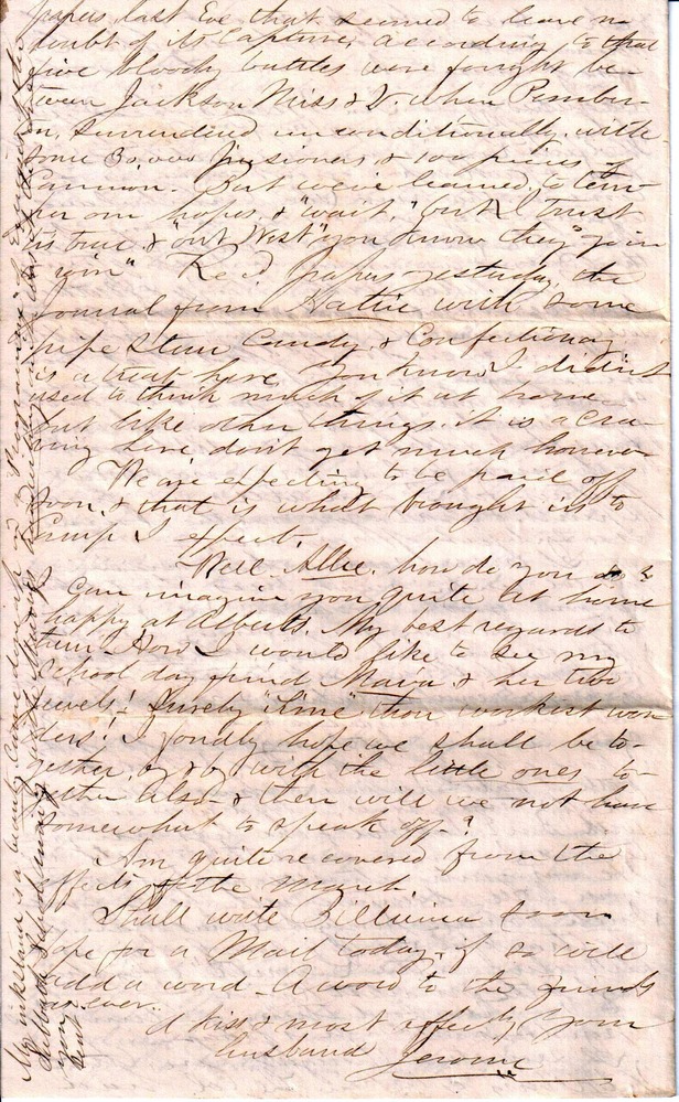 Primarily letters written during the American Civil War by Jerome Peirce, 36th Regiment of Massachusetts Volunteers, to his wife from late 1862 until May 1864, when he was killed in action. Also includes a few letters from Peirce's wife and other correspondence to and from other Peirce family members and friends.