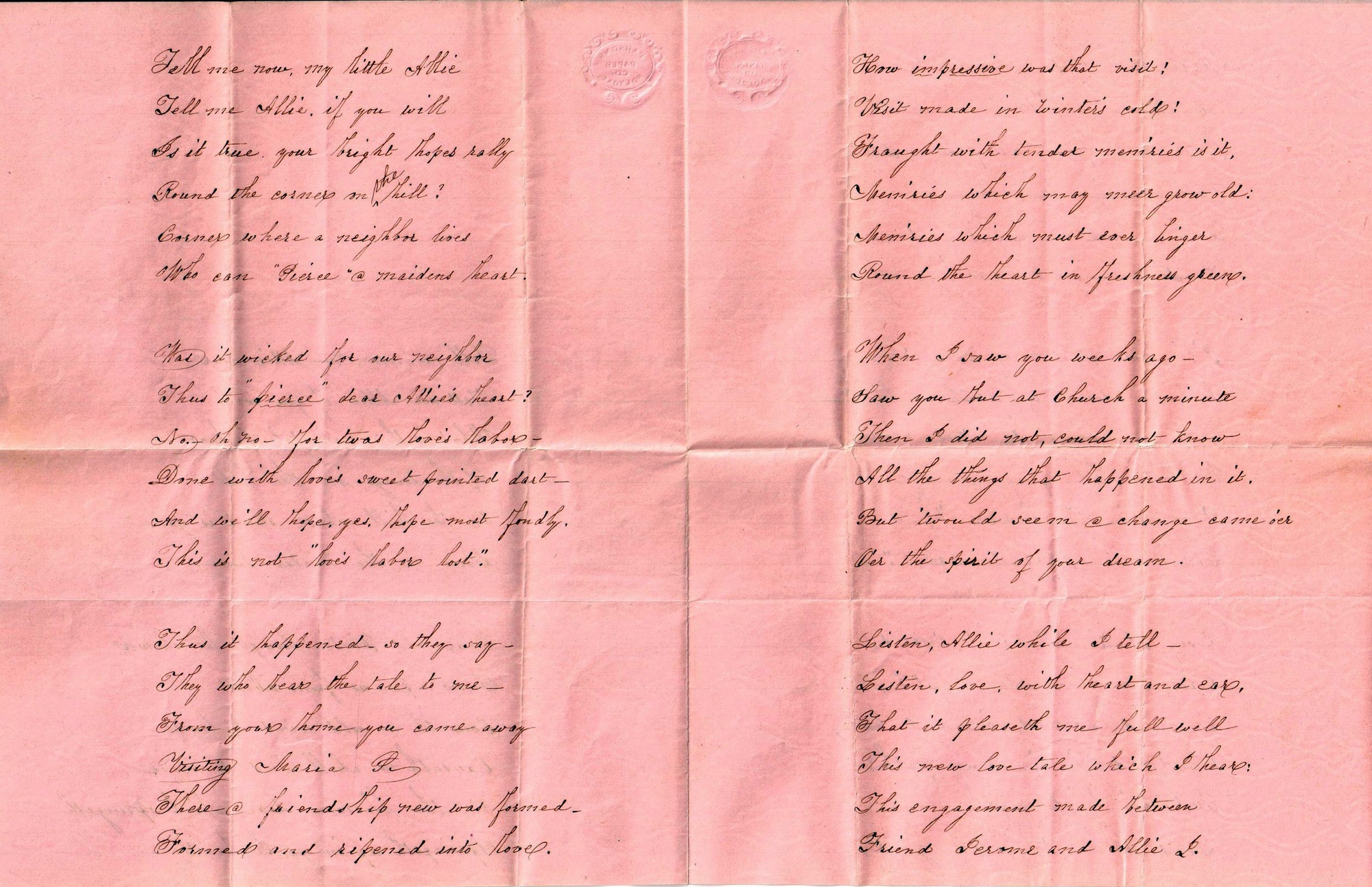 Primarily letters written during the American Civil War by Jerome Peirce, 36th Regiment of Massachusetts Volunteers, to his wife from late 1862 until May 1864, when he was killed in action. Also includes a few letters from Peirce's wife and other correspondence to and from other Peirce family members and friends.