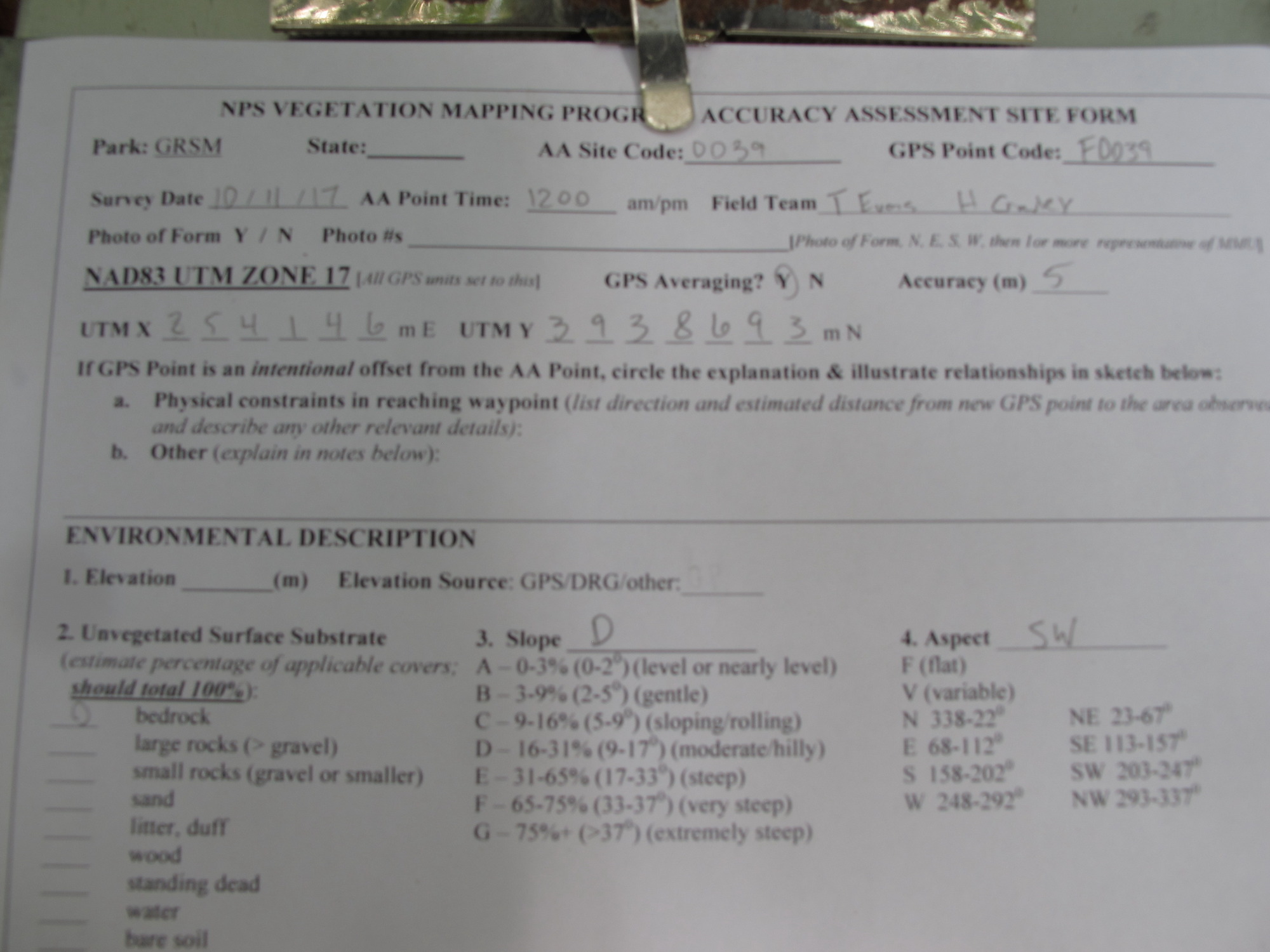 GRSM Accuracy Assessment. Plot Code: GRSM_AA_0039_1