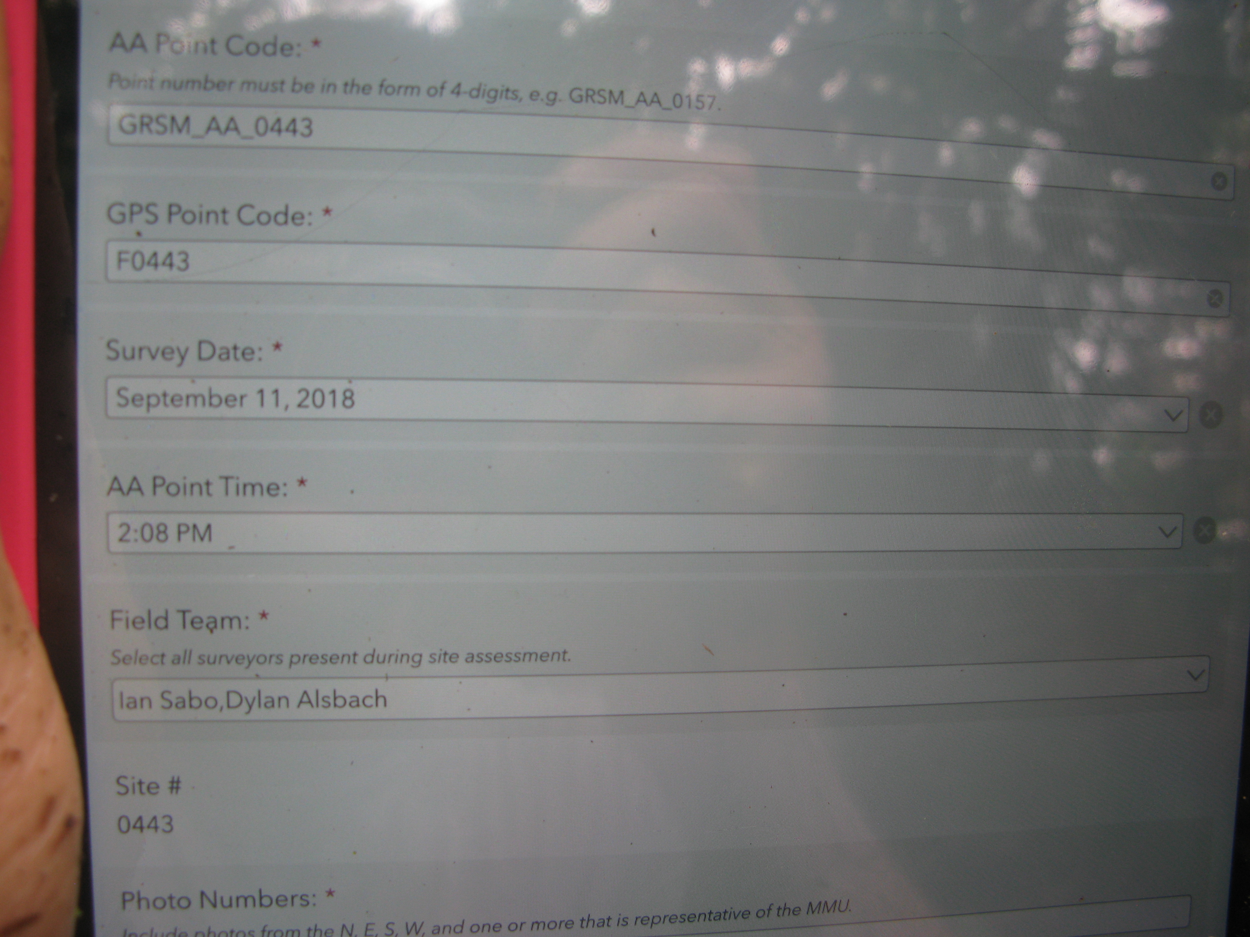 Plot Code: GRSM_AA_0443_1 from the Great Smoky Mountains National Park (GRSM) Accuracy Assessment.