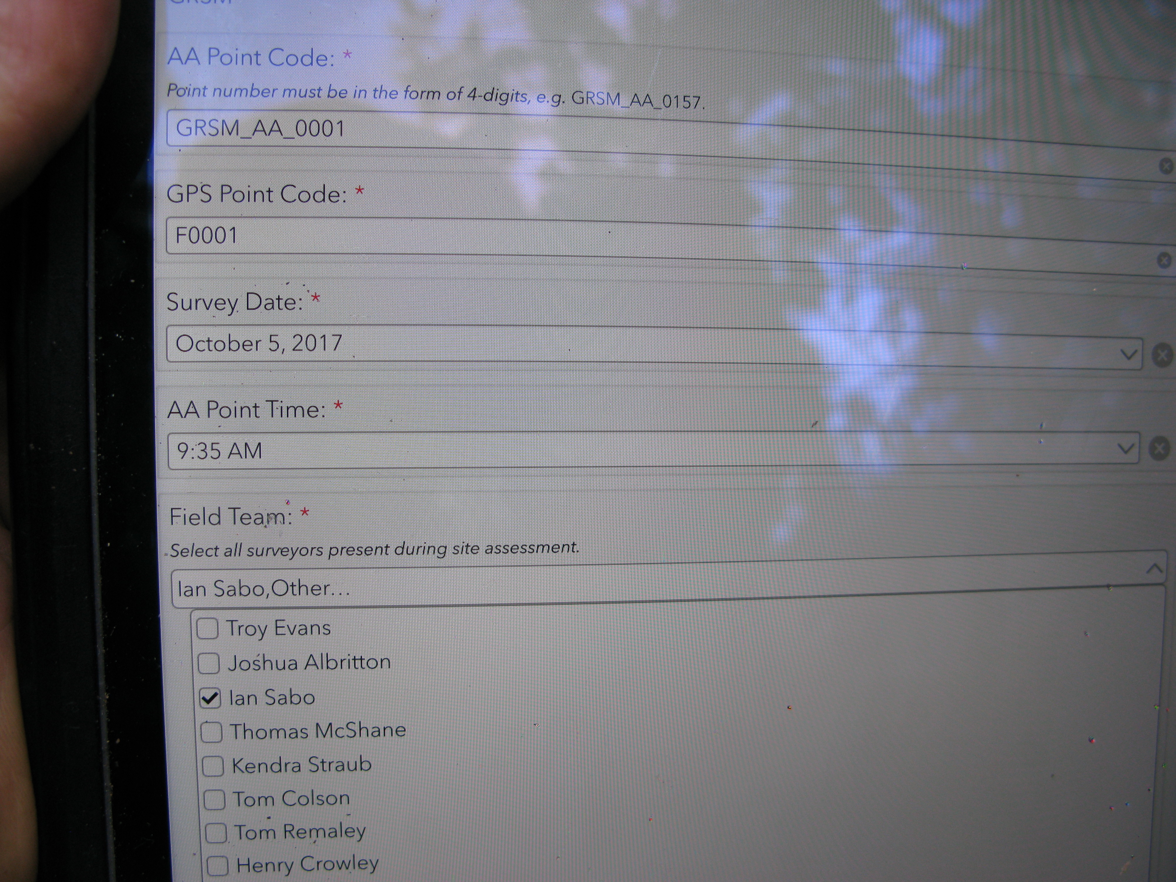 Plot Code: GRSM_AA_0001_1 from the Great Smoky Mountains National Park (GRSM) Accuracy Assessment.