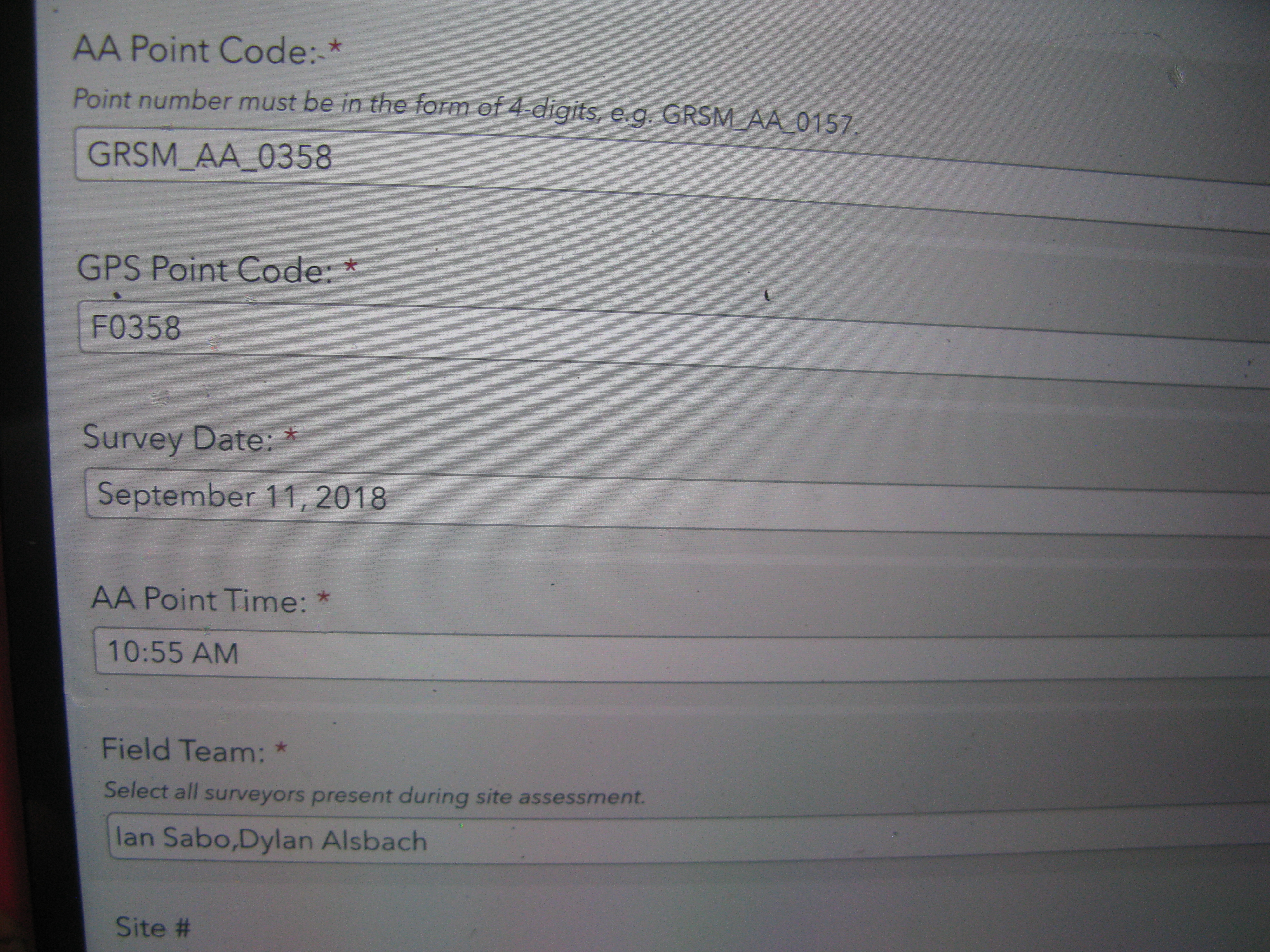 Plot Code: GRSM_AA_0358_1 from the Great Smoky Mountains National Park (GRSM) Accuracy Assessment.