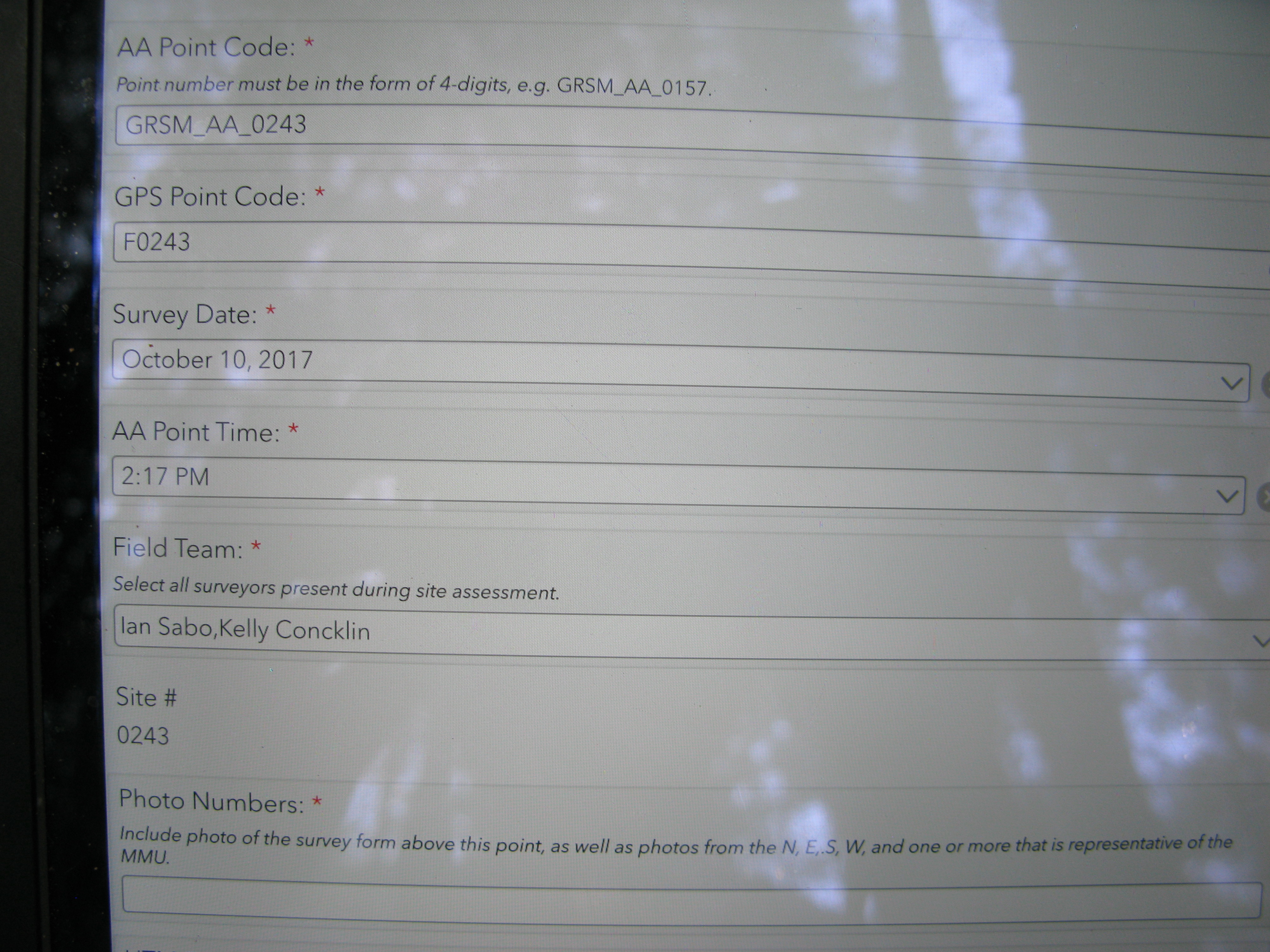 Plot Code: GRSM_AA_0243_1 from the Great Smoky Mountains National Park (GRSM) Accuracy Assessment.