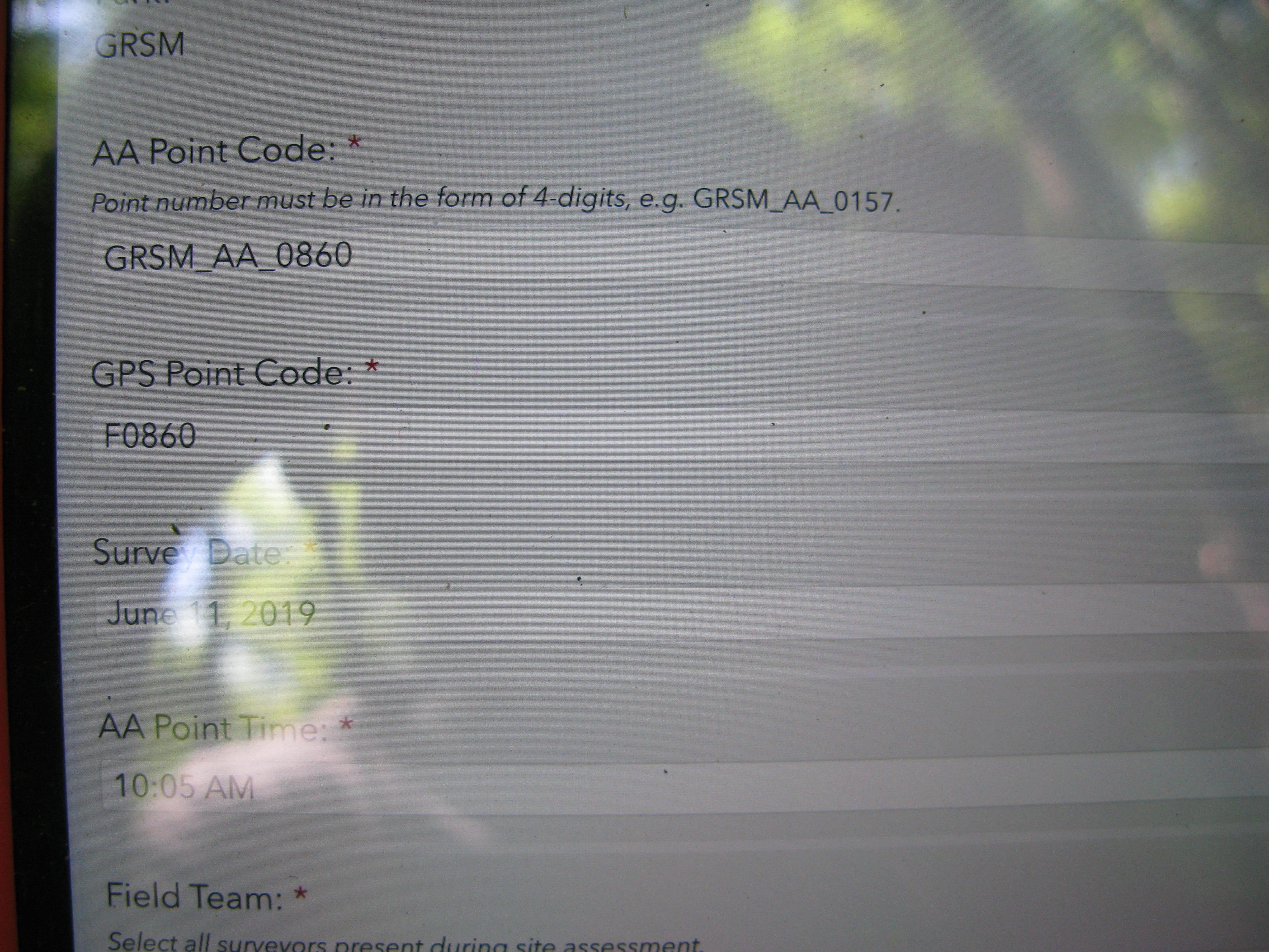 GRSM Accuracy Assessment. Plot Code: GRSM_AA_0860_1