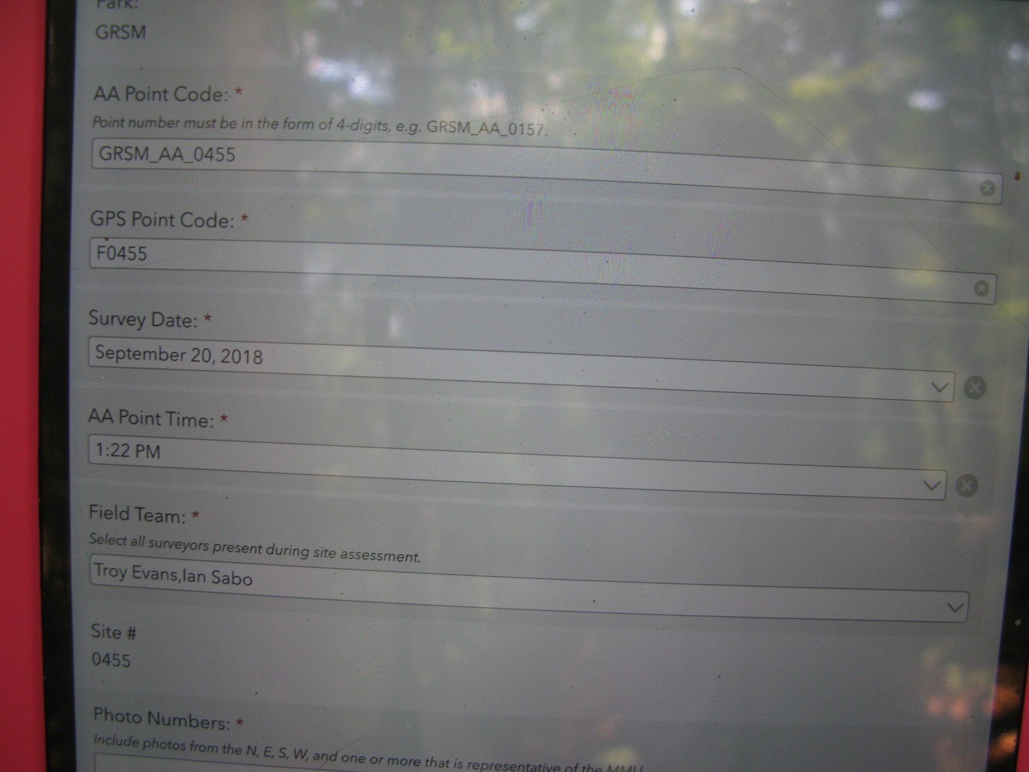 Plot Code: GRSM_AA_0455_1 from the Great Smoky Mountains National Park (GRSM) Accuracy Assessment.