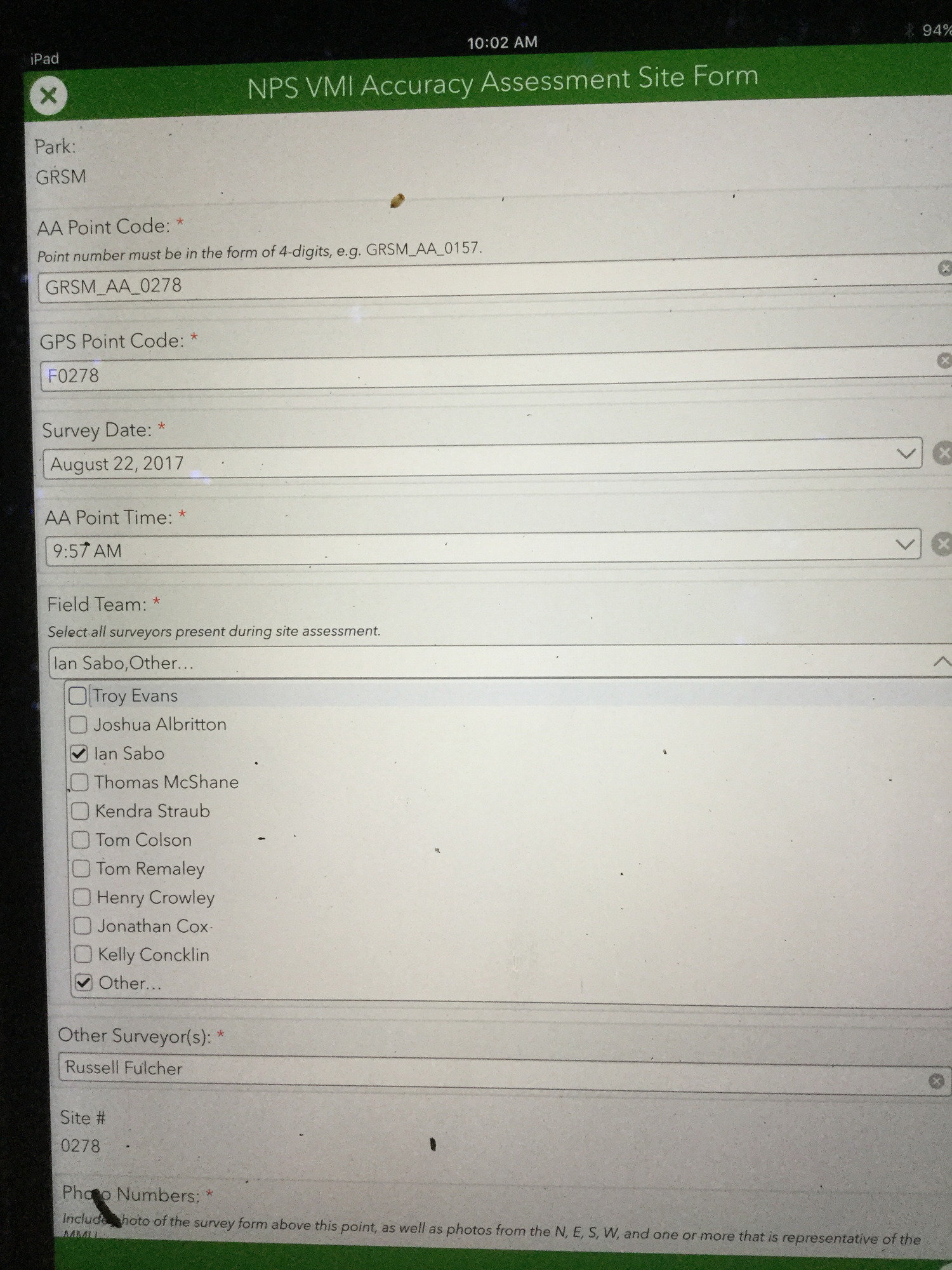 GRSM Accuracy Assessment. Plot Code: GRSM_AA_0278_1