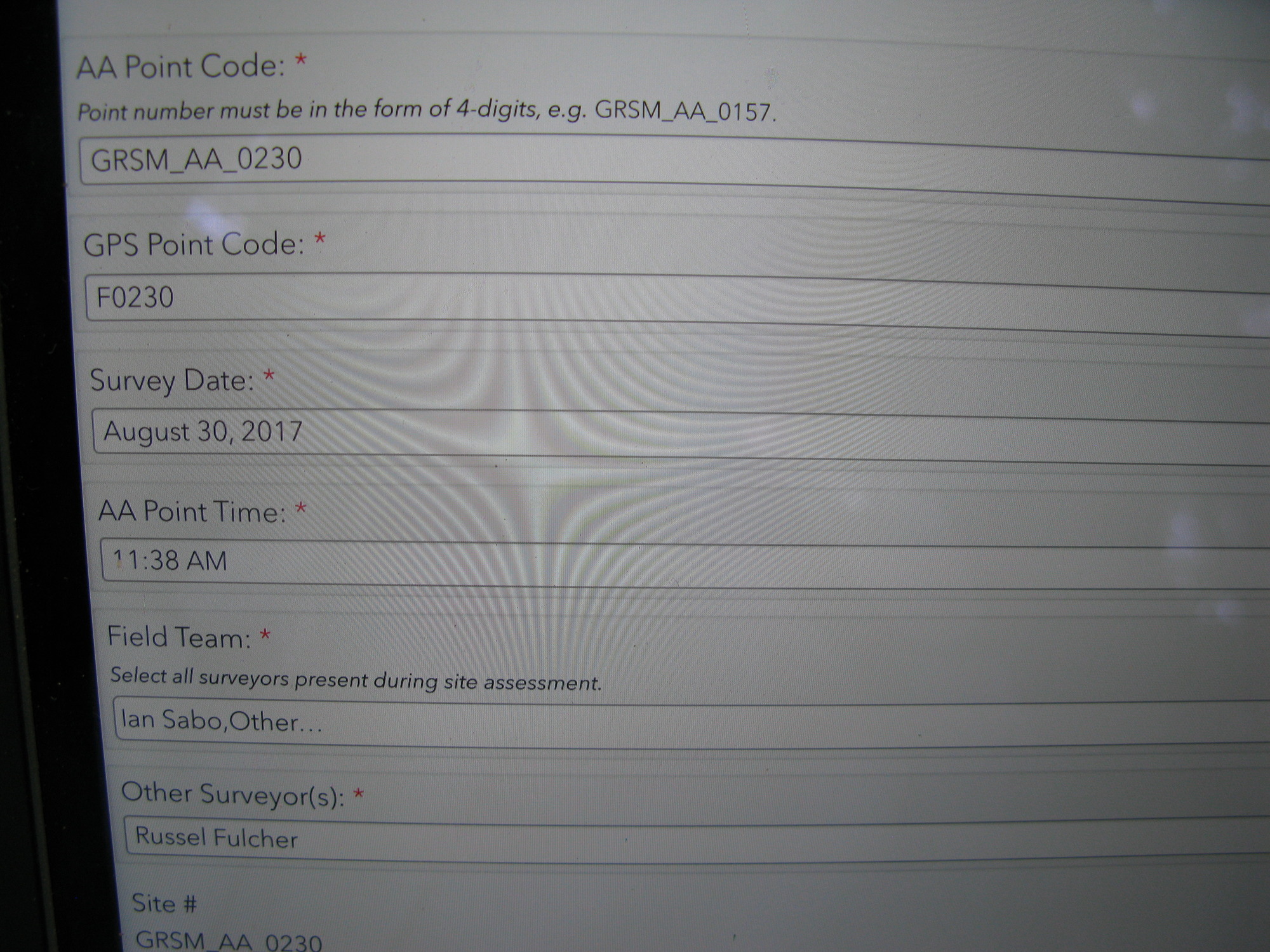 Plot Code: GRSM_AA_0230_1 from the Great Smoky Mountains National Park (GRSM) Accuracy Assessment.
