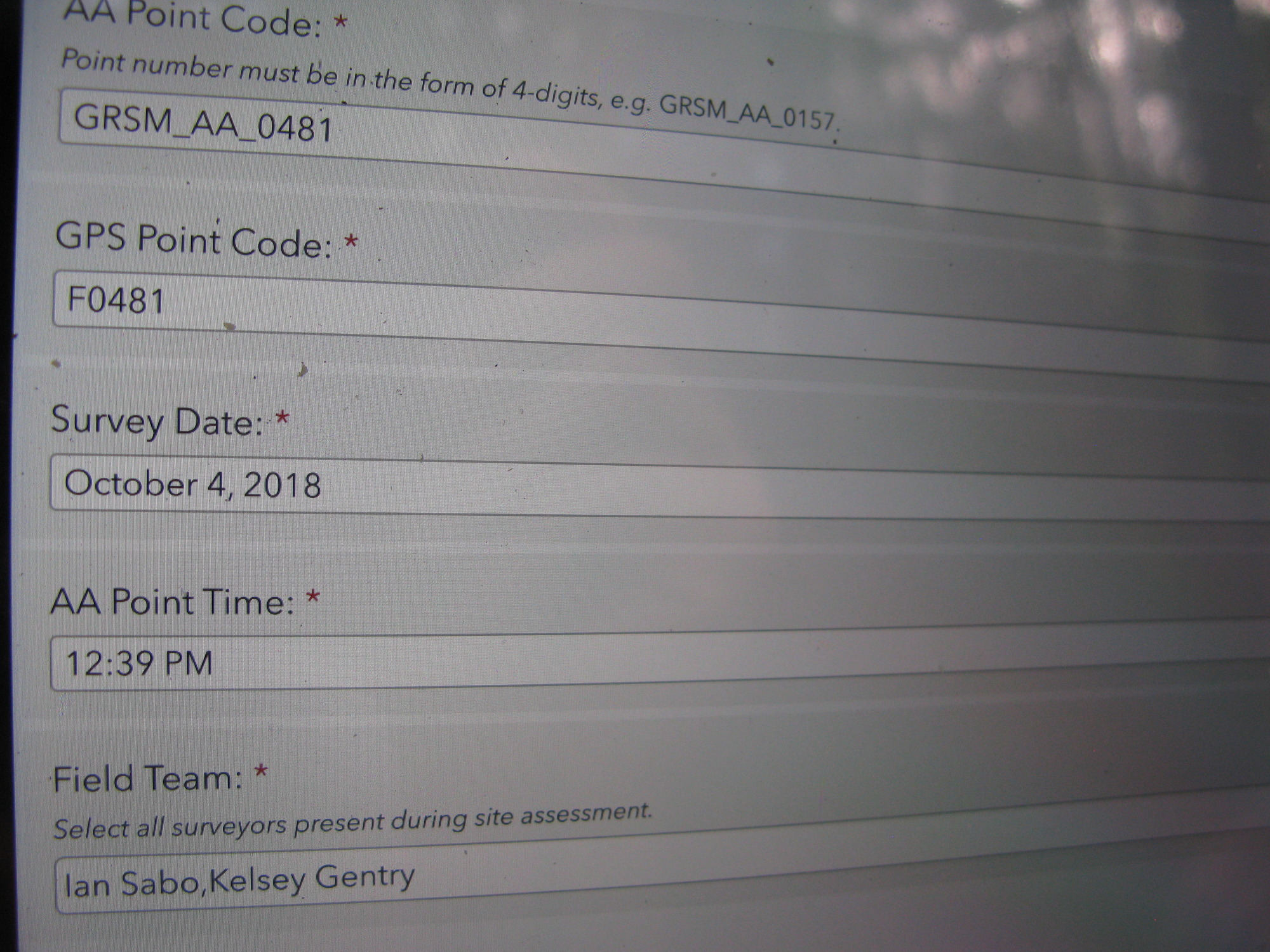 Plot Code: GRSM_AA_0481_1 from the Great Smoky Mountains National Park (GRSM) Accuracy Assessment.