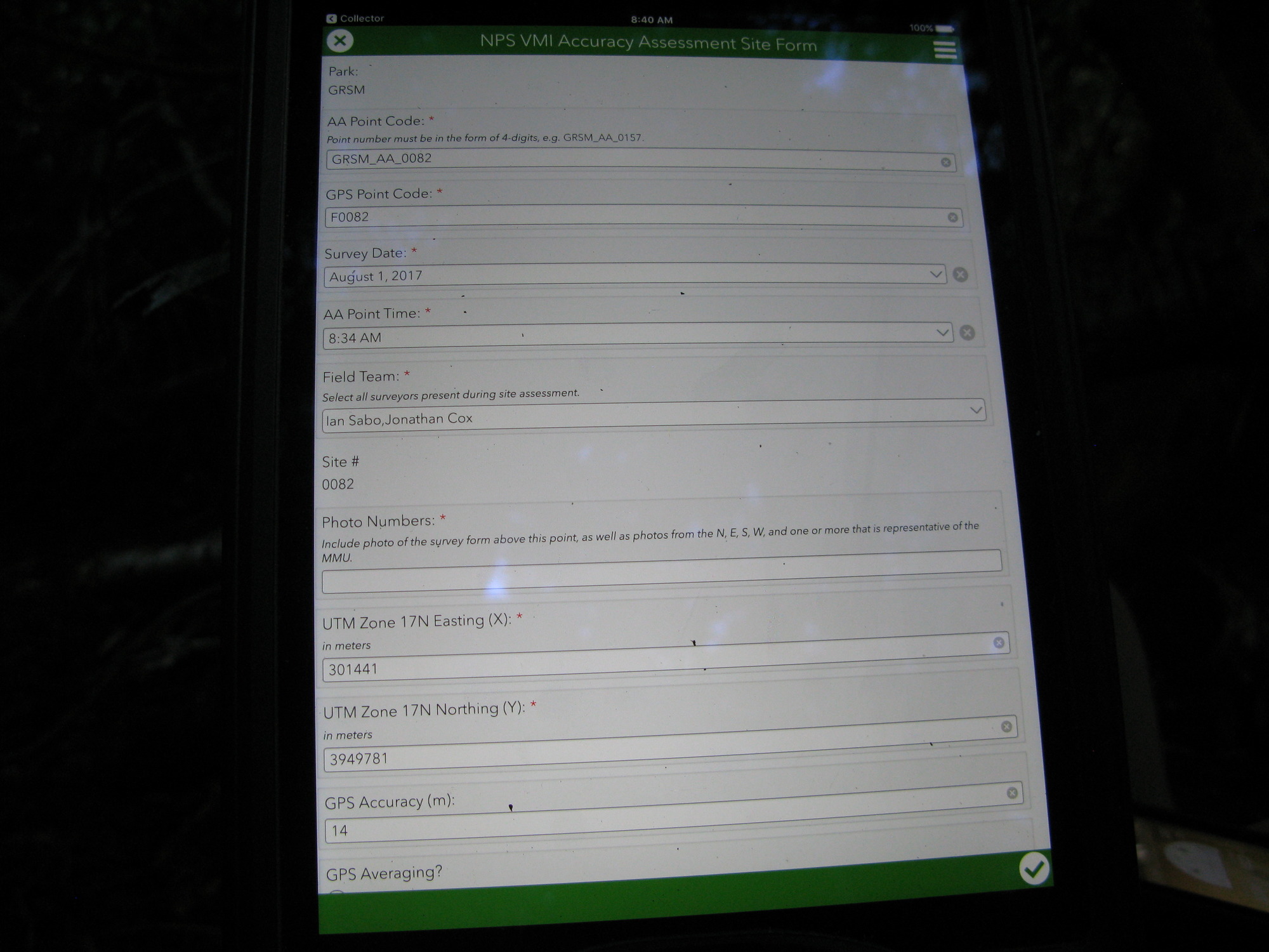 GRSM Accuracy Assessment. Plot Code: GRSM_AA_0082_1
