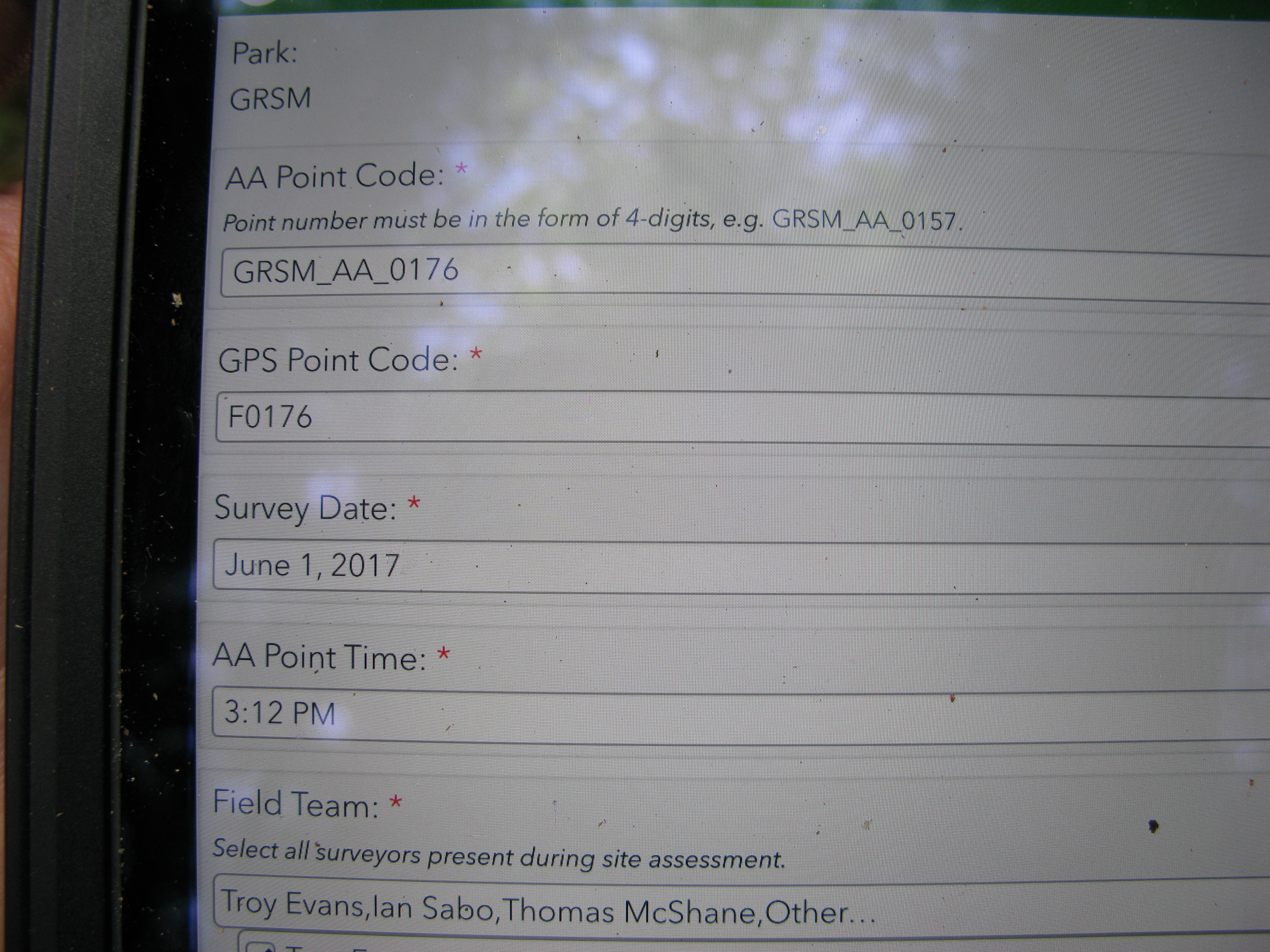 Plot Code: GRSM_AA_0176_1 from the Great Smoky Mountains National Park (GRSM) Accuracy Assessment.