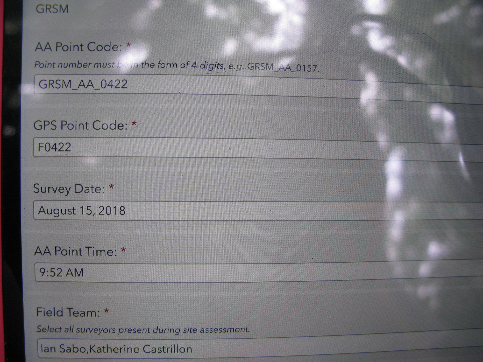 Plot Code: GRSM_AA_0422_1 from the Great Smoky Mountains National Park (GRSM) Accuracy Assessment.