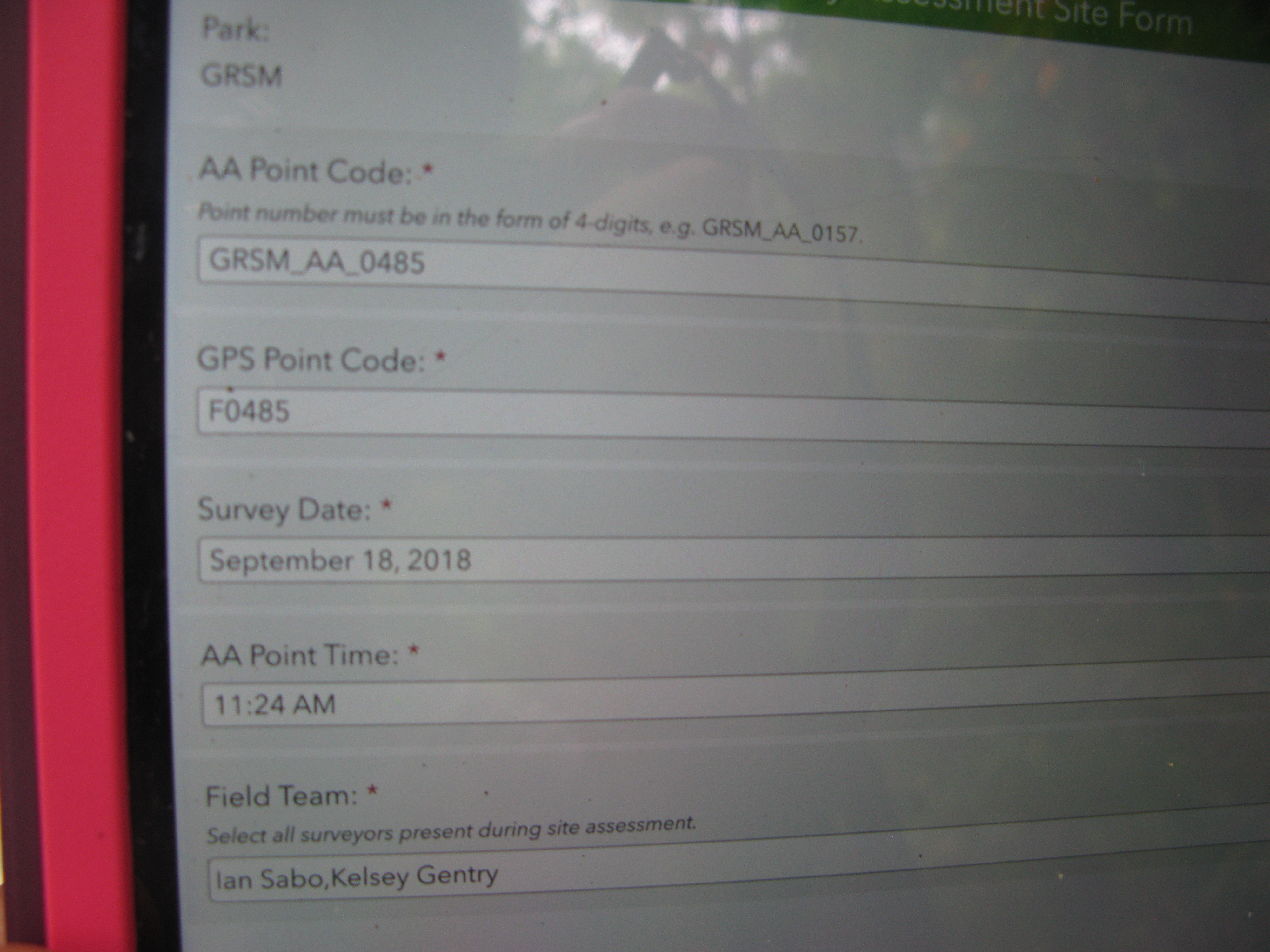 Plot Code: GRSM_AA_0485_1 from the Great Smoky Mountains National Park (GRSM) Accuracy Assessment.