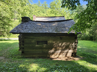 Henry Whitehead House, 1881, 1896. The house consists of two side-gabled log pens built with their long sides parallel a few feet from each other. The older cabin at the rear (used as a kitchen after the front cabin was built) is a 16.5' x 16' x 13.5' high building of roughly hewn logs founded on stone piers. Fieldstone end chimney employs mud mortar, and roof is covered with wood shingles. The later front cabin is 26' x 18' x 21' high and employs sash-sawn logs. This building has full-width front and rear shed-roofed porches, an off-center entry, and a shouldered brick end chimney. Gable ends are weather boarded, and loft is lit by a single unglazed window.