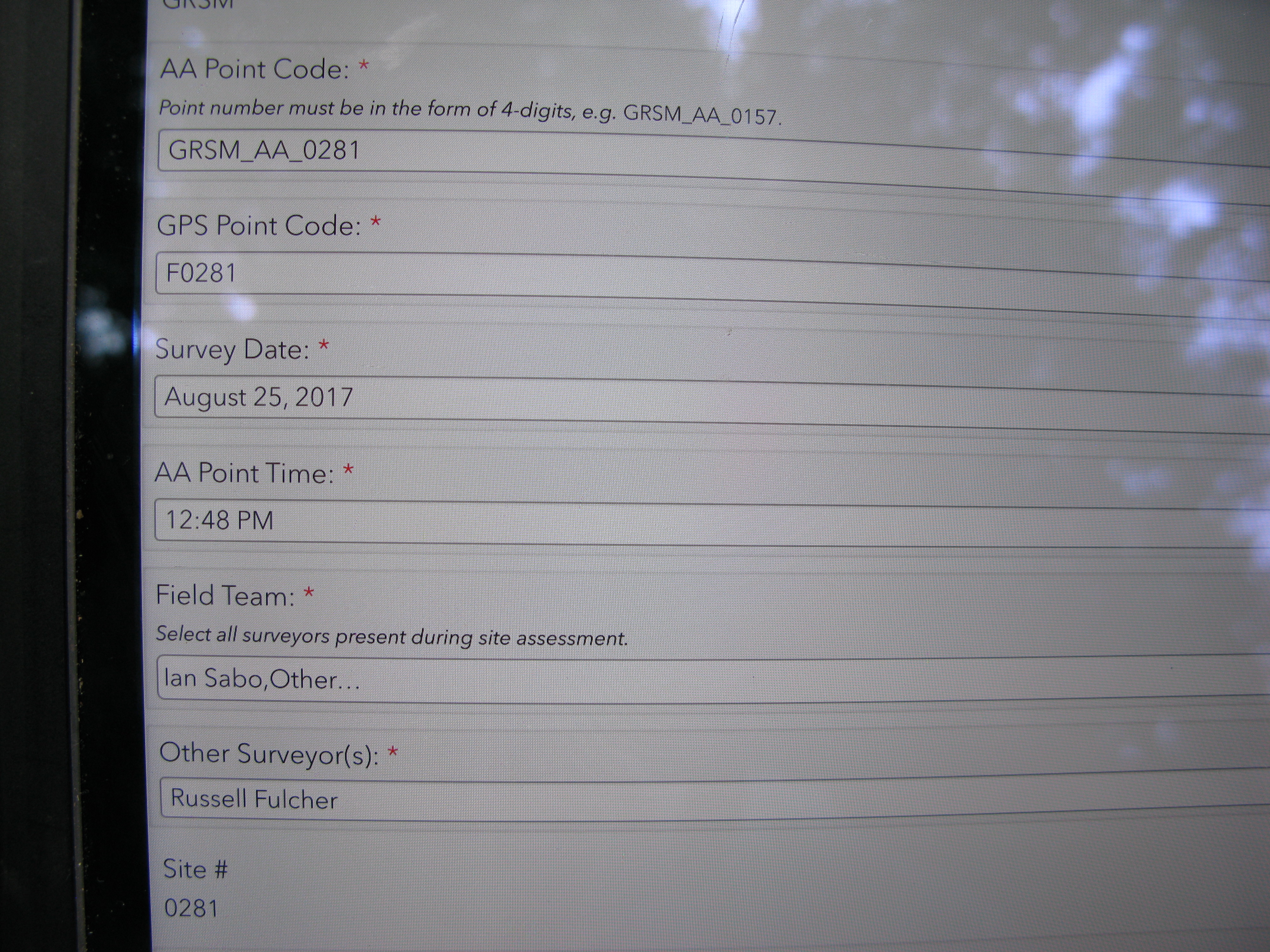 Plot Code: GRSM_AA_0281_1 from the Great Smoky Mountains National Park (GRSM) Accuracy Assessment.