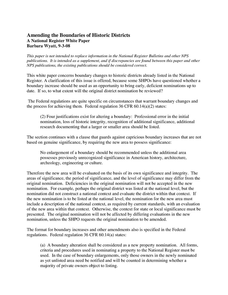 NR White Paper on Amending the Boundaries of Historic Districts