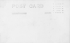 The back of a postcard. The words "Post Card" are centered on the card, along with the subtitles "Correspondence" and "Address" under it. There is a box outlined with "AZO" and triangles on each corner, with the instructions "Place stamp here" at the center. There is no address, correspondence, or stamp. It shows slight signs of age, such as darker spots and faded print.