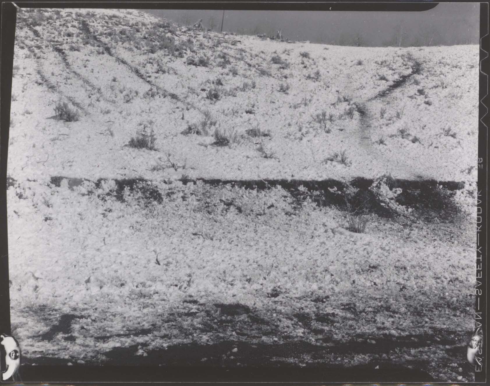 Tracks of migrating elk, concentrated to cross fence on Cockrell Ranch about 1 mile below Neil’s Store. Negative #: 11063. Locality: Jackson Hole National Monument [Grand Teton National Park]. Location of Negative: Biologist’s Office, Director’s Office. [This information comes from the reverse of the envelope for this negative number.].
