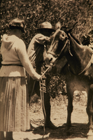 NPS employee with a visitor holding a donkey in Sequoia and Kings Canyon National Parks.