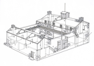 Aerial cutaway diagram of Winsor Castle, about 1872. Image shown is a composite of the base illustration of the exterior and courtyard of the structure as well as the interior schematic overlay.