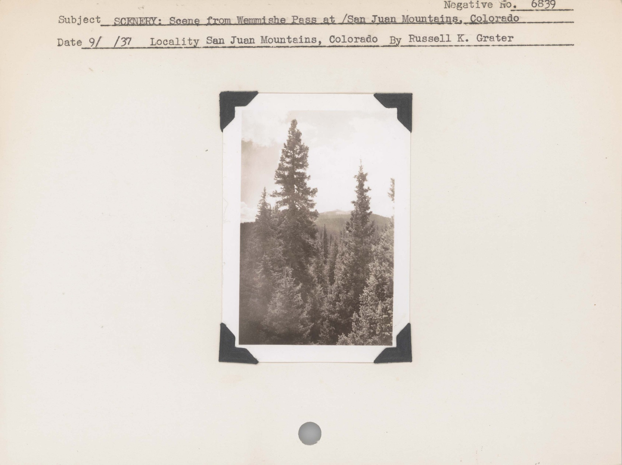 Scenery: Scene from Wemmishe Pass at San Juan Mountains, Colorado. Negative #: 6839. Locality: San Juan Mountains, Colorado.