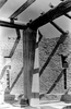 One of the pillars in new kiva showing original stone discs upon which old pillar stood, Aztec Ruins National Monument.