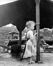 Children chained to deck of canal boat (to prevent child from accidentally falling into water). (The canal was abandoned after the Flood of 1924. Chesapeake and Ohio Canal National Historical Park became a unit of the National Park Service in 1972).