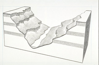 Cross-section diagram of a canyon with deferential erosion.