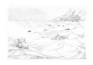 Conceptual illustration depicts ponies swimming away from a wrecked Spanish galleon.