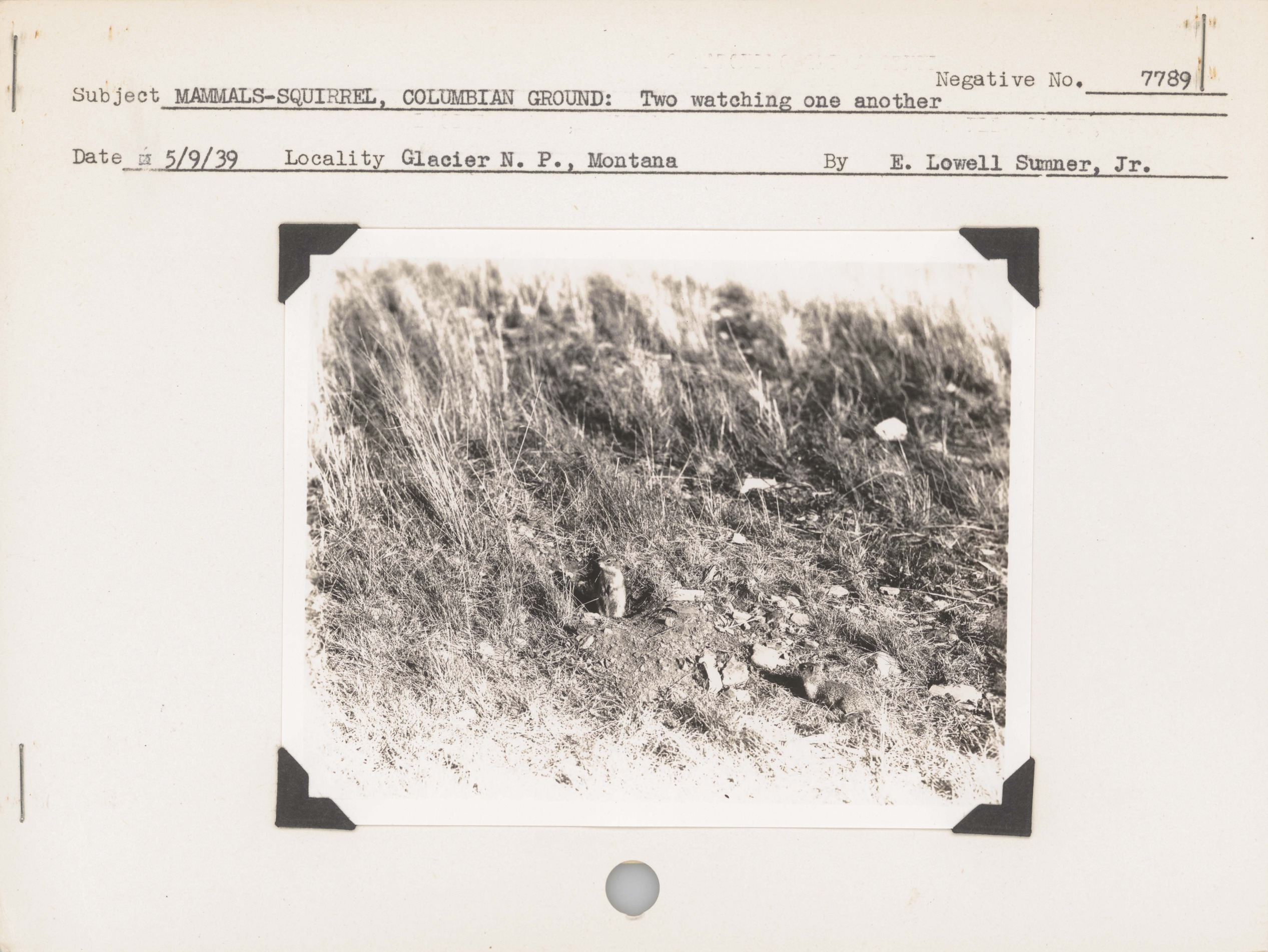 Mammals--Squirrel, Columbian Ground--Two watching one another. Locality: Glacier National Park, Montana. Negative #: 7789