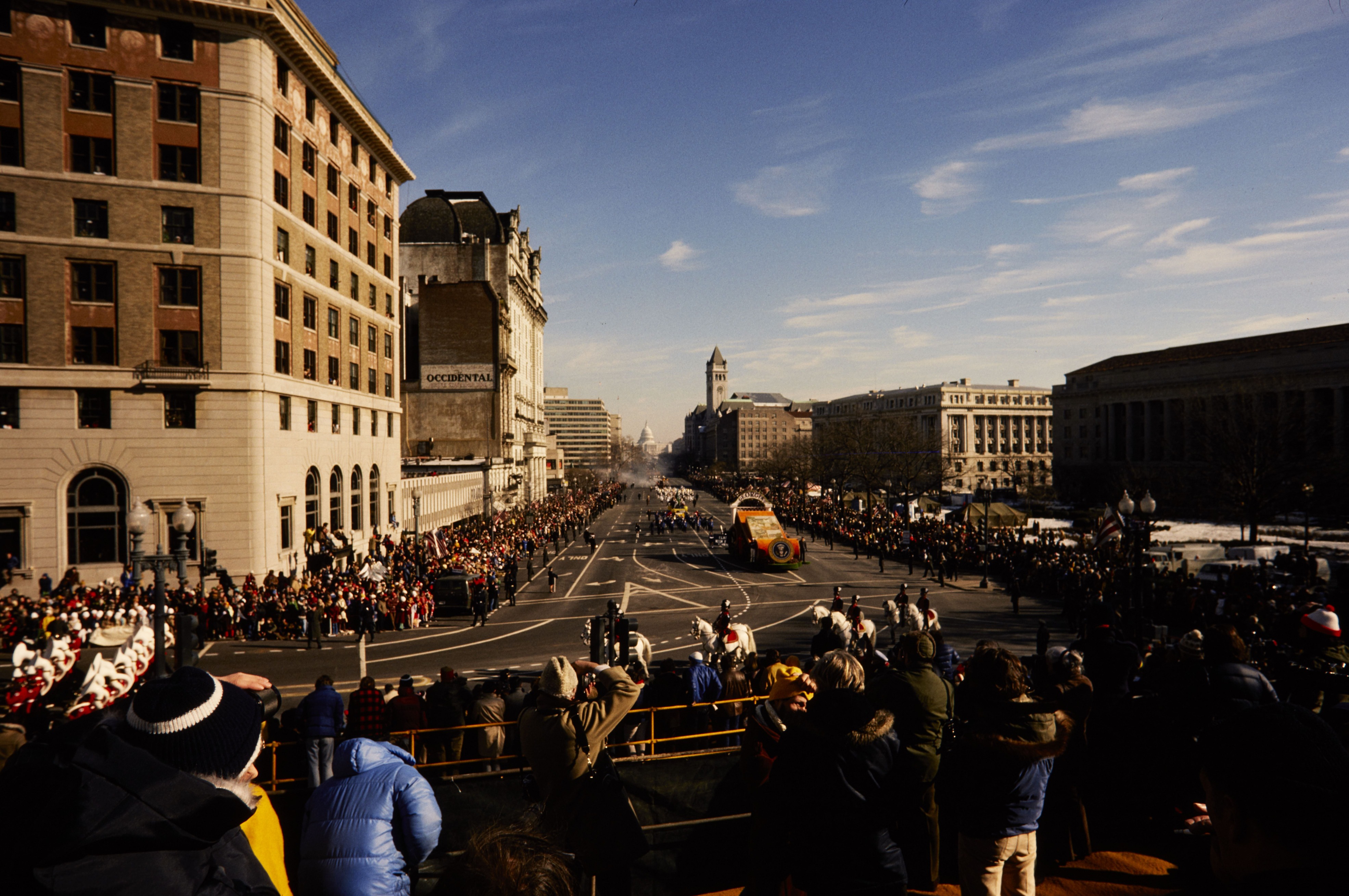 President Jimmy Carter's Inaugural Parade with the Georgia float coming up on Pennsylvania Ave. in Washington, D.C.