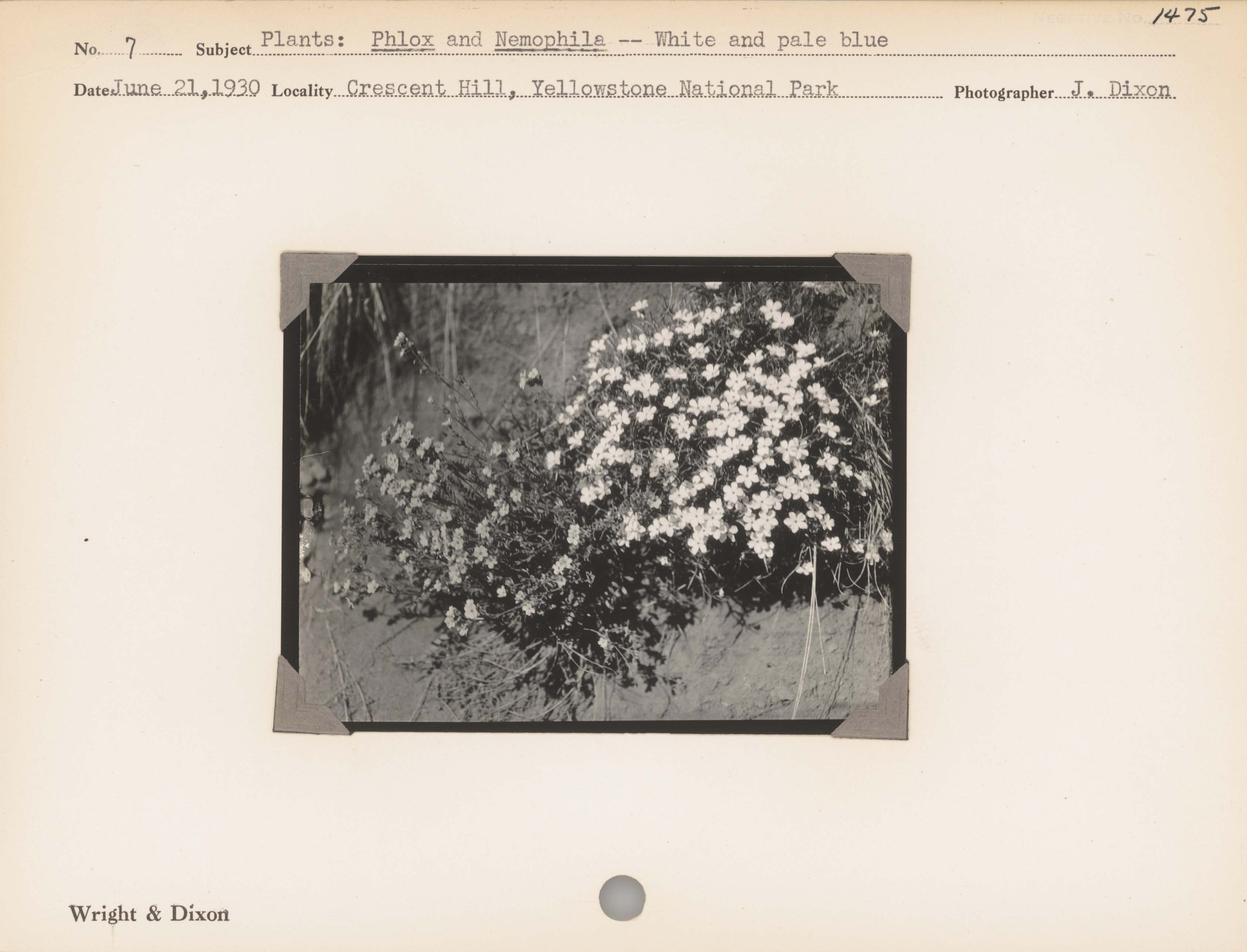 Plants--Phlox and Nemophila--White and pale blue. Locality: Crescent Hill, Yellowstone National Park. Negative #: 1475
