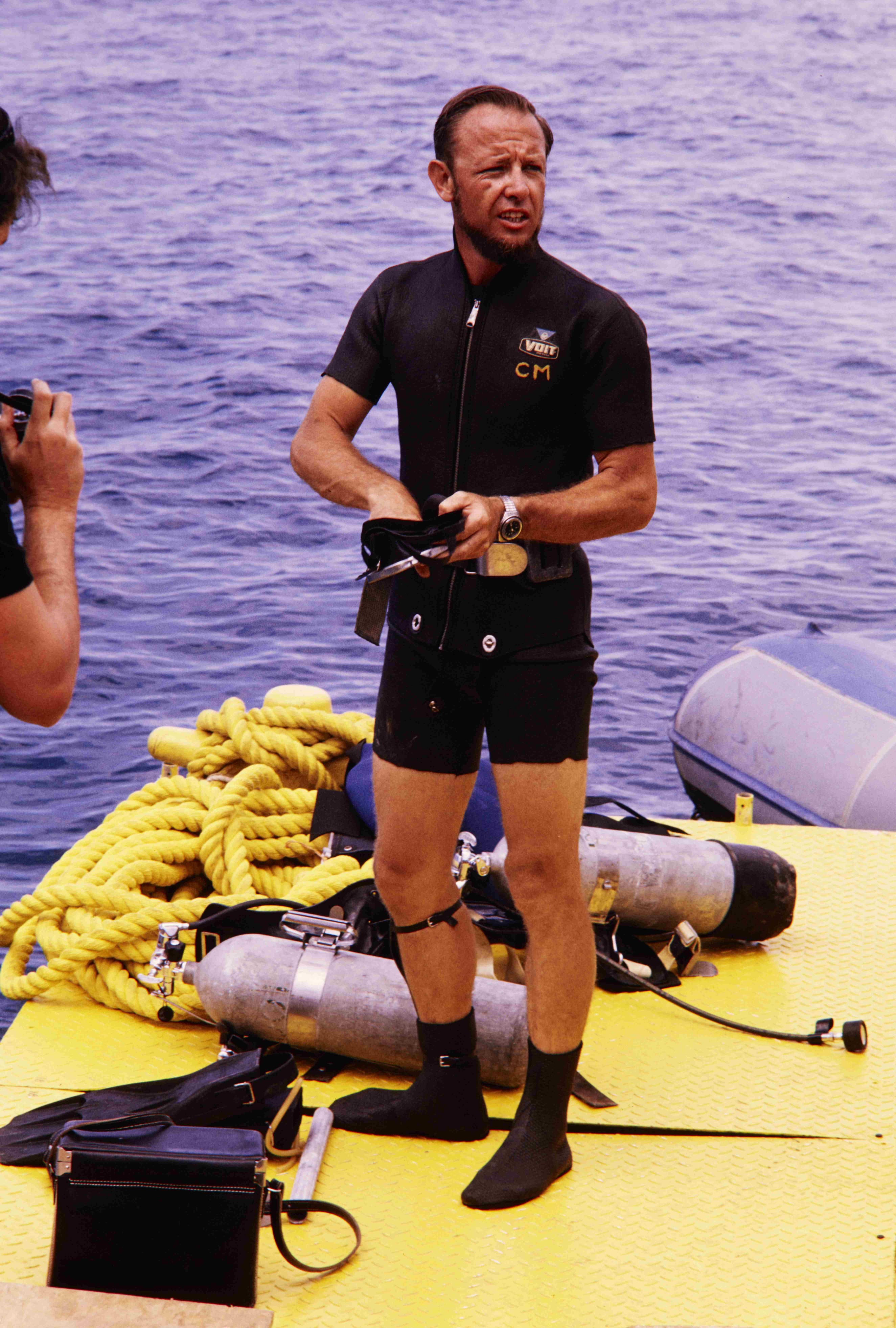 Diver getting ready during the Tektite II Project in Virgin Islands National Park.