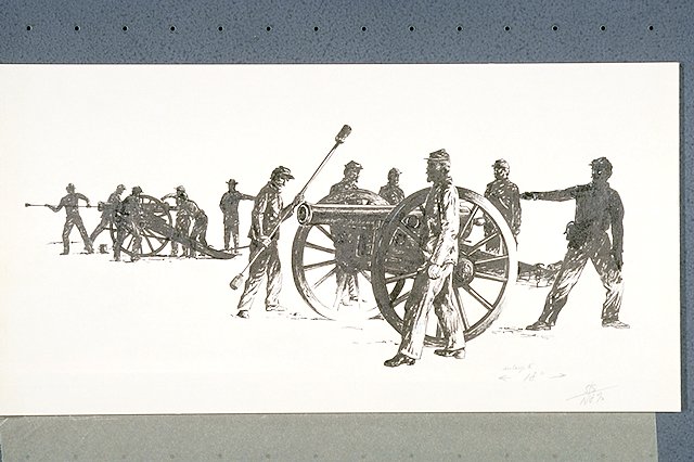 Silhouette of battery and crew.