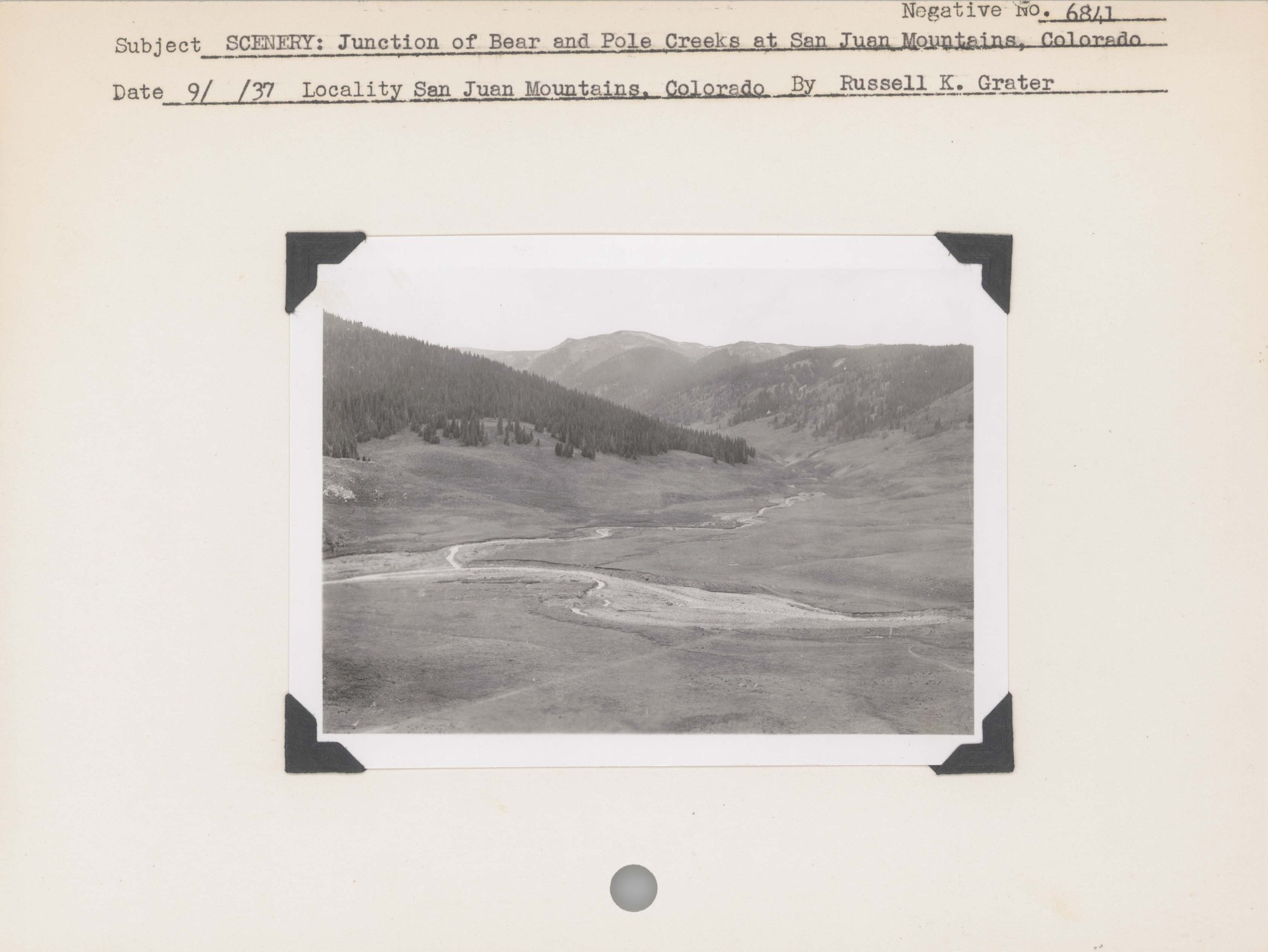 Scenery: Junction of Bear and Pole Creeks at San Juan Mountains, Colorado. Negative #: 6840. Locality: San Juan Mountains, Colorado.