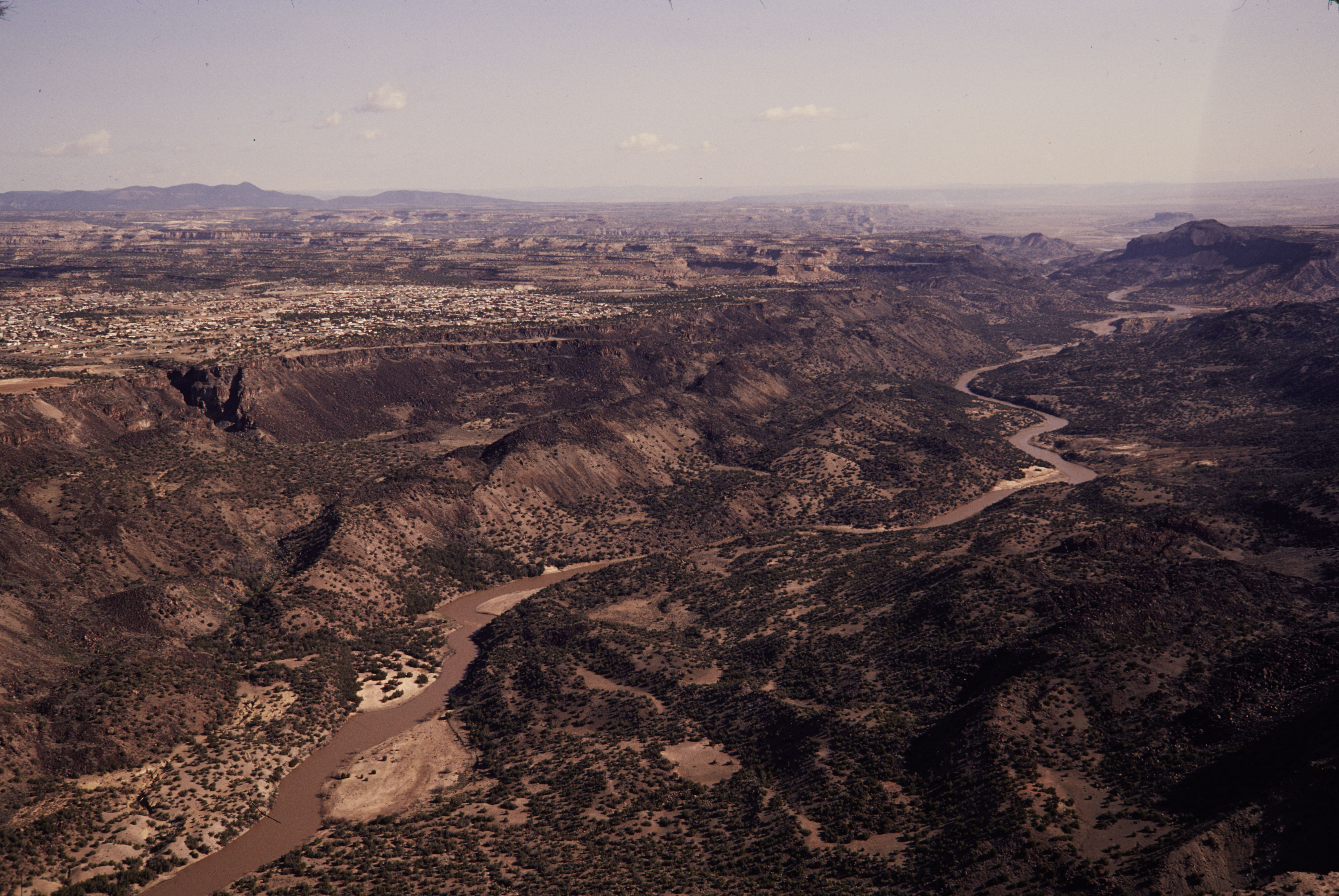Fires and Firefighting. Aerial view of White Rock and the Rio Grande River in Bandelier National Monument.