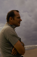 NPS employee standing on the beach in Padre Island National Seashore.