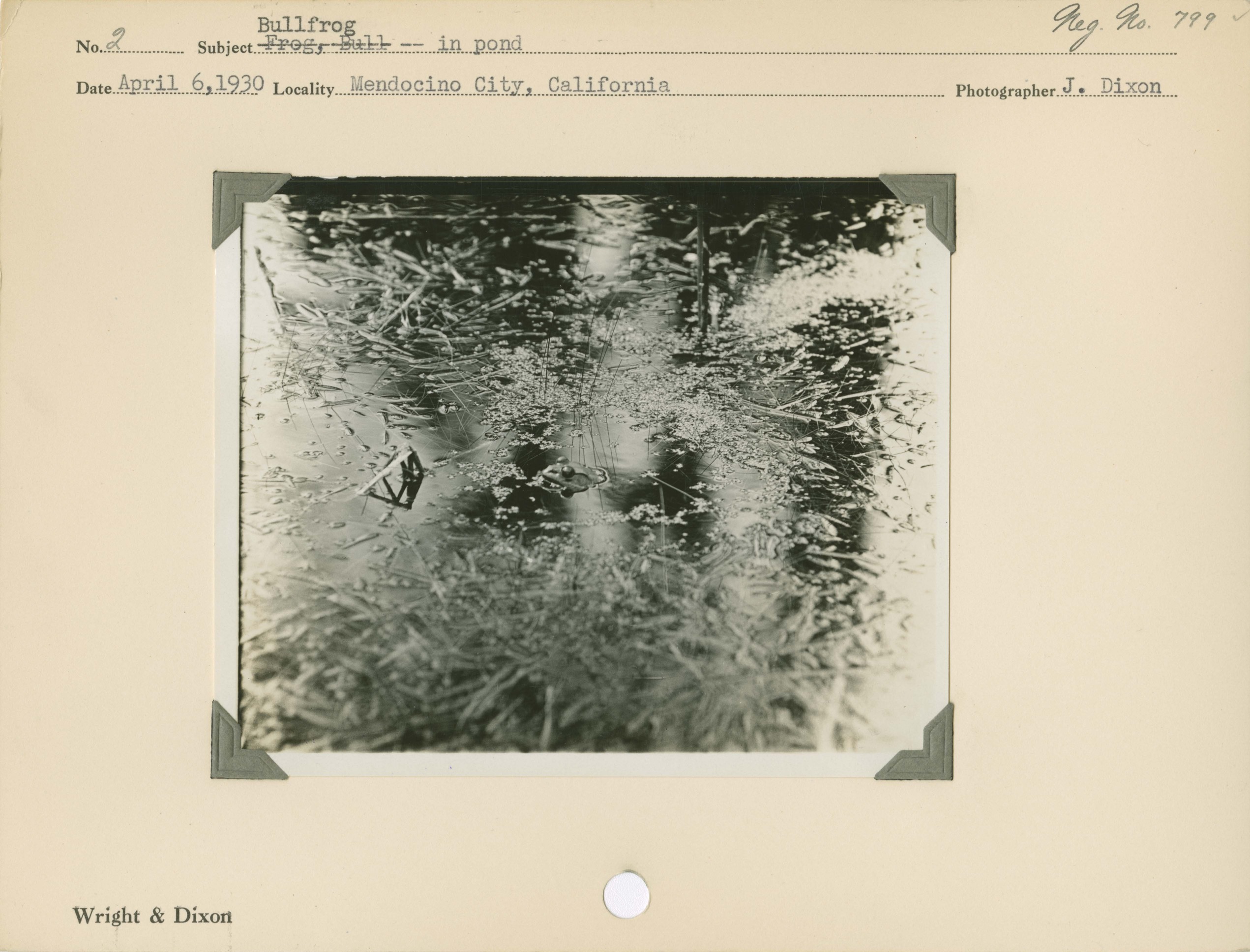 Bullfrog -- in pond. Locality: Mendocino City, California. Negative #: 799