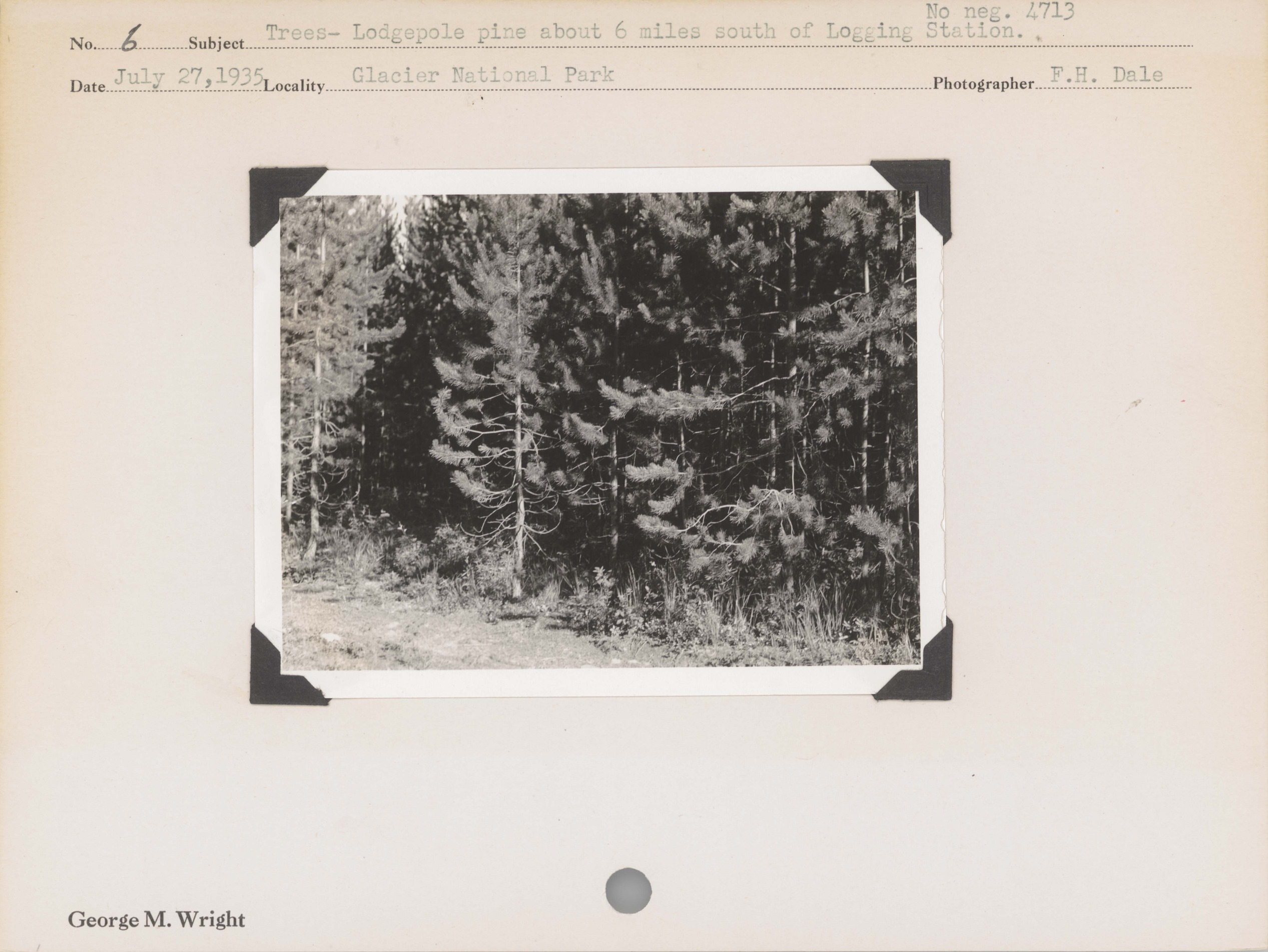 Trees: Lodgepole pine about 6 miles south of Logging Station. Negative #: 4713. Locality: Glacier National Park.
