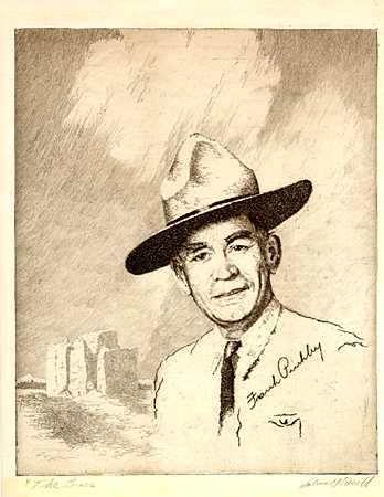 Original etching, "The Boss", Frank Pinkley (after a photo of "The Boss" with the uncovered Casa Grande Ruin in the background).