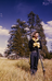 NPS employee dressed up in historical clothing leaning on a shotgun in Fort Larned National Historic Site.