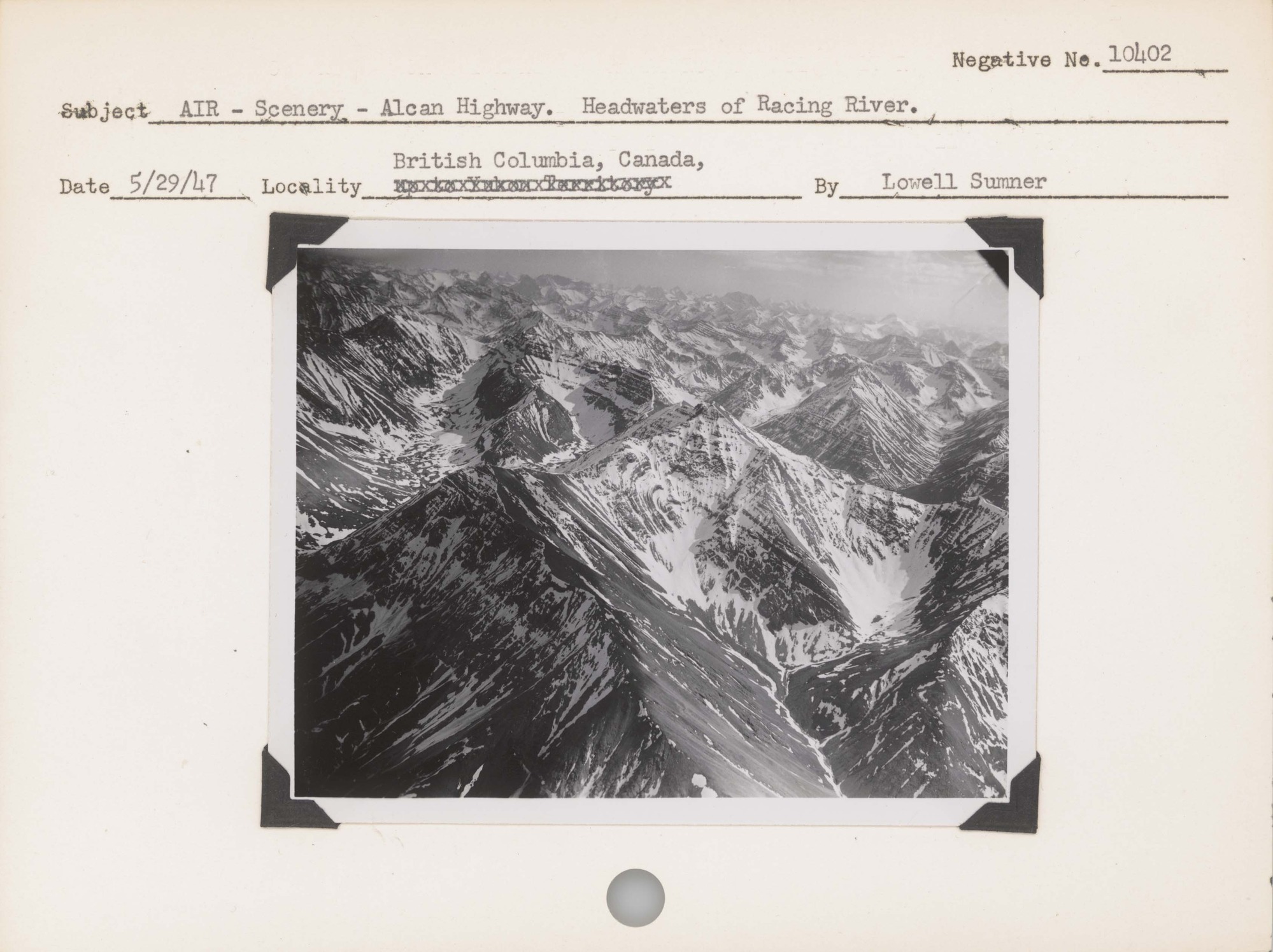 Air—Scenery – Alcan Highway. Headwaters of Racing River. Negative #: 10402. Locality: British Columbia, Canada.