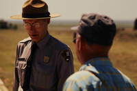 Superintendent Hastings talking to a visitor in Fort Union National Monument.